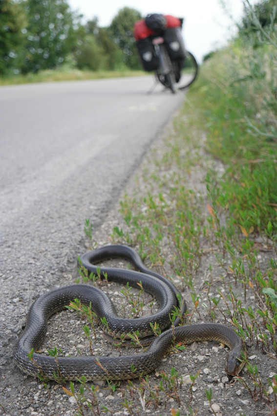 Next Previous 8 September 2016 567 × 851 There are much more snakes in Europe then I expected. I nearly cycled on that one. Luckily I didn’t, he was still alive. The filter on his eyes is camouflage. He pretends being dead #Bulgaria