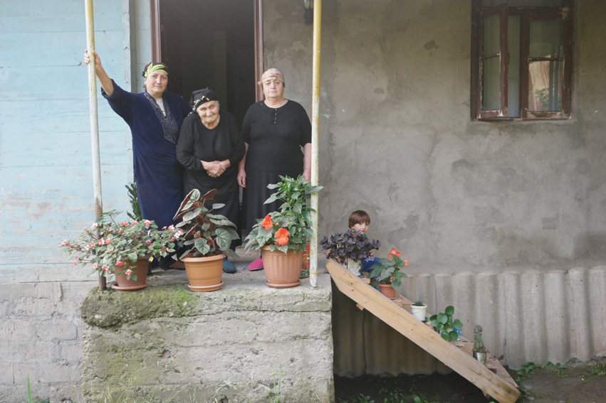 It was late afternoon in the little mountain village Riketi when the sun appeared. I quickly dried all my completely wet gear (tent, backpack…). A man (Gela), who spoke little English, came to me and offered a night stay with his family. An hour later I was having a lovely dinner with a super sweet family in this house. The lady in the middle of the picture is the great grandmother Jolie, she’s 85 and is the sweetest elderly lady of #Georgia