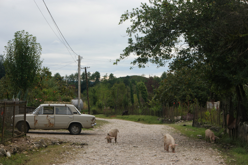 Next Previous 1 December 2016 851 × 567 This is so #Georgia! Village road with shabby lada and piglets walking around