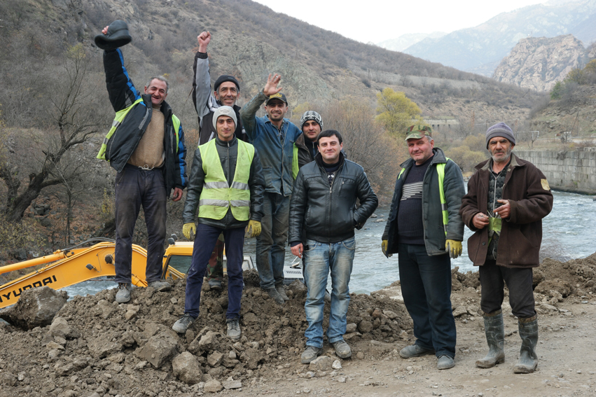 When I was riding further and further on the ‘forbidden’ road to Vanadzor I suddenly saw what was going on. They were really making a tunnel, and I really couldn’t pass. But these two strong men helped me crossing the tunnel and opened the iron fence for me #Armenia