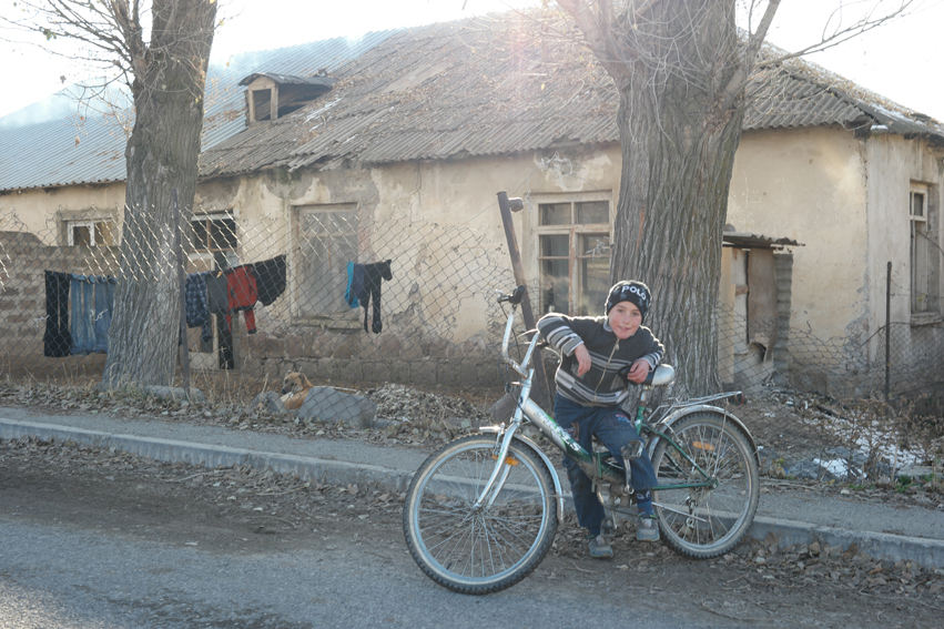 It was around 3 pm when I arrived in the small mountain village of Lusashogh. It was -4ºC and this little boy was cycling around without gloves or jacket. He hadn’t cold at all. He liked his bell and used it a lot 😉 I offered him a ride on my bicycle, which he liked too. He called his mom and instantly the whole family came outside and was watching their little boy riding a heavy loaded touring bike #Armenia