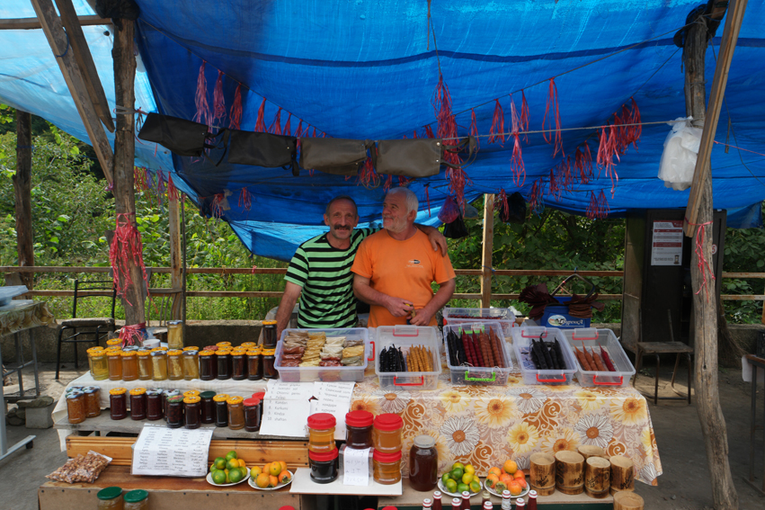 It was in Kashuri that I couldn’t find a good camping spot. So I knocked at the door (actually gate) of the house where super sympathetic Tengo and his mother and sister are living. Tengo is a very sweet and welcoming guy. He and his sister are making hundreds of chairs to pay their studies. That evening his sister came over to my tent with French toasts, tea and pears. The following morning the mother of the house offered me tea and katchapuri, a typical Georgian yummy dish #Georgia