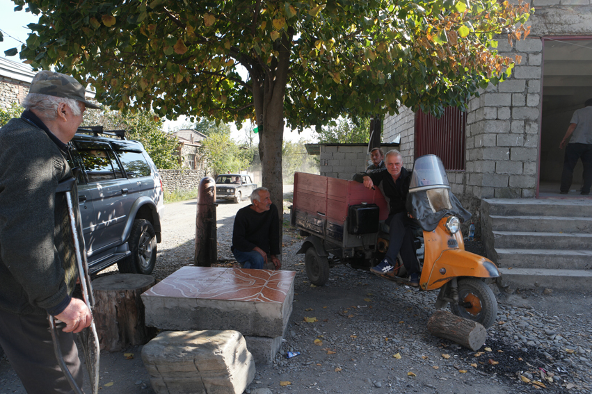At the intersection for taking the road to Omala in Tusheti National Park, I realised that I missed a part of my bag that attaches it to my rear rack. The man on the scooter, who owns the butchery in the back, helped me for searching a rope (I left most of my luggage in Tbilisi, including some rope) #Georgia