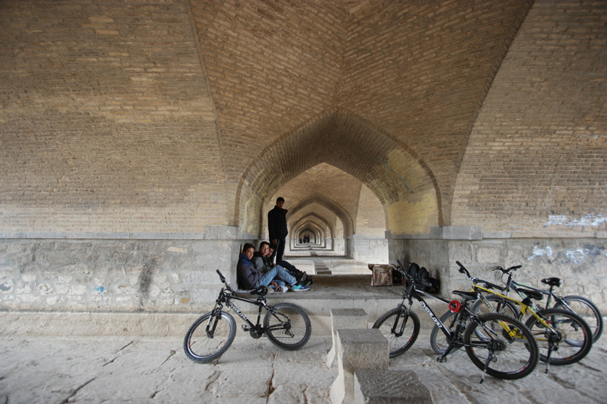 In Isfahan you have 5 beautiful old bridges from the Safavid period and therefore. Unfortunately the river dried up. But the good thing is, it became a meeting point for locals. Musicians are gathering to sing or play, youngsters are making small fires or are just hanging around. It feels always good to see cyclists in a country #Iran