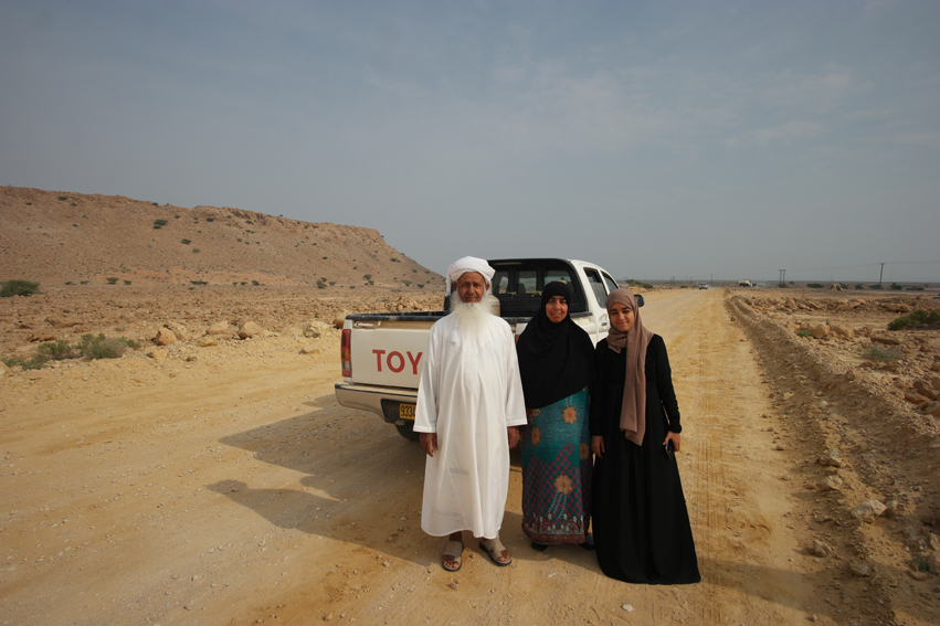 Oman has a countless amount of wadis. You can cycle into the wadi and back. It happens you can cycle further but most of the time you just have to return the part you’ve cycled already. Sometimes there’s just no time to cycle the whole stretch back. That stretch you cycled all the way up (and down and up and down and up, and in the end much higher). Because I wanted to save time I hitchhiked the first stretch ‘down’. This car stopped. A sheikh with his wife and daughter were keen on riding me the whole way down. Because they were so kind and it was so interesting to talk with them I just said thank you instead of saying: ‘Stop stop, from here on I cycle further’ #oman