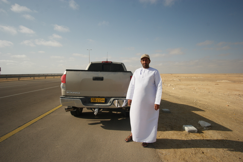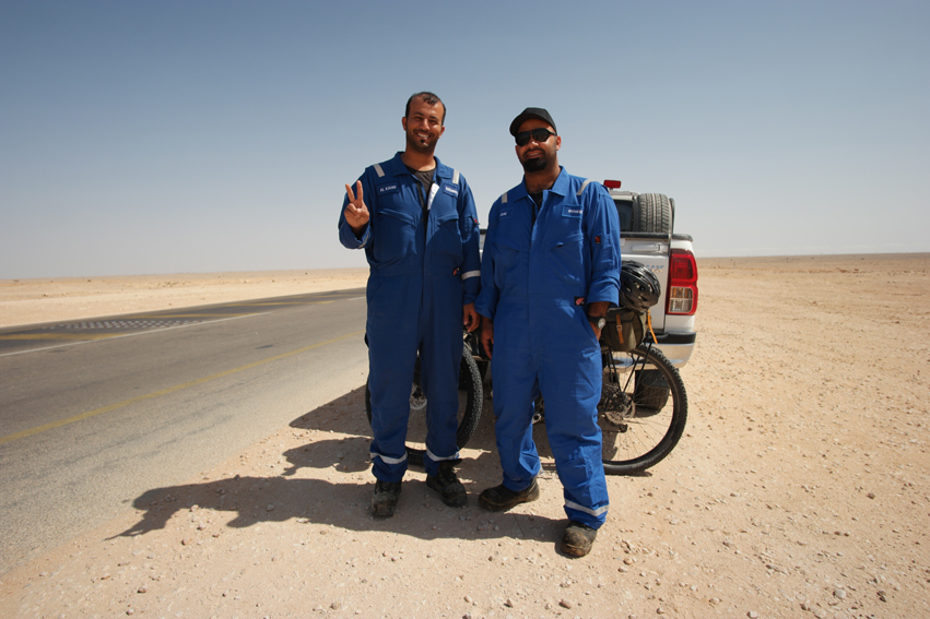 These guys were truly great. Although it wasn’t allowed to drive during their lunch break, they insisted on bringing me 40 kilometres further. The company allowed them only to drive 20 kilometres. So at kilometre 19, he stopped the motor, waited for five minutes and then we drove further for the next 19 kilometres. Funny and extremely good guys. Nice conversation in the desert #oman