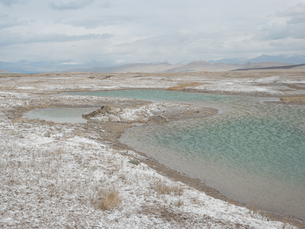 I approached Karakul Lake, a salt lake formed by a meteorite impact ten million years ago. The soil changed. Salt sprinkled clay clung to my tyres and impeded cycling. After miles of pushing the road became rideable again. It stayed beautiful!