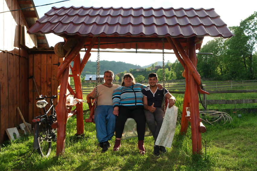 I asked the neighbours of family Màgurean (picture) if I could camp in their garden. When I saw the surface it wasn’t the ideal spot (cobblestones and mud all around). So the man asked this family if I could camp here. It was possible 🙂 We communicated a whole evening via Google translate and they spoiled me with lovely pancakes and a barbecue. Thank you so much Dana, Sorin, Alin, Andrei and Bogdan for this unforgettable night #Romania