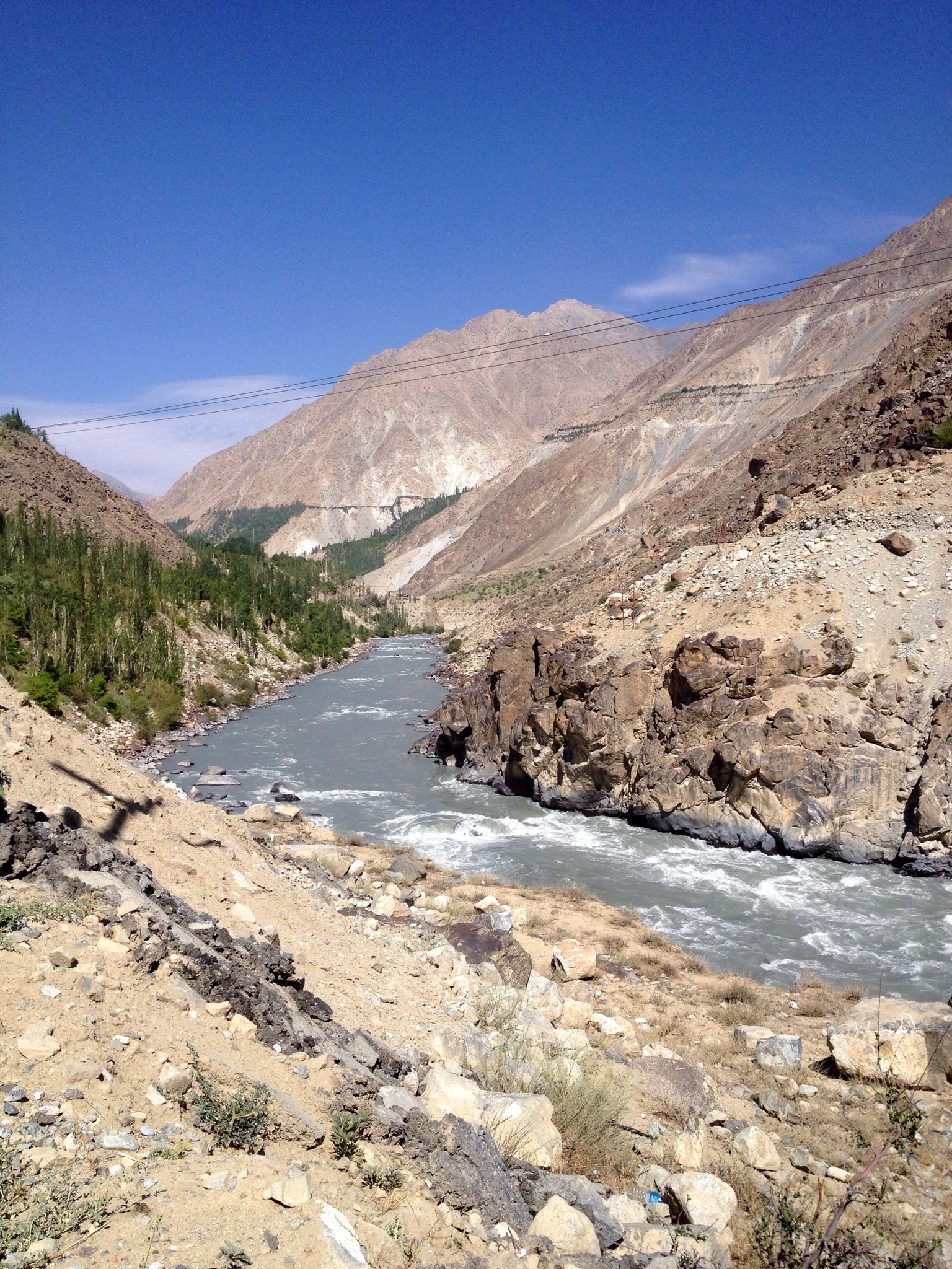 En boven die bomenrij rechts, ligt Pakistan